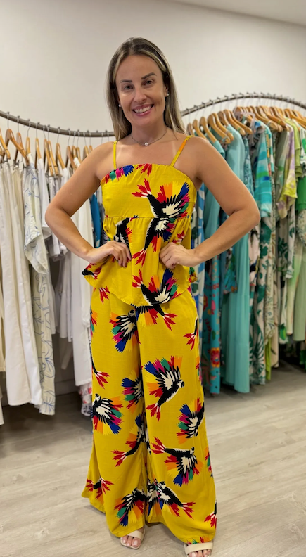 Sua estampa exclusiva (ou cor vibrante) une as peças com elegância, criando um visual moderno e cheio de charme.