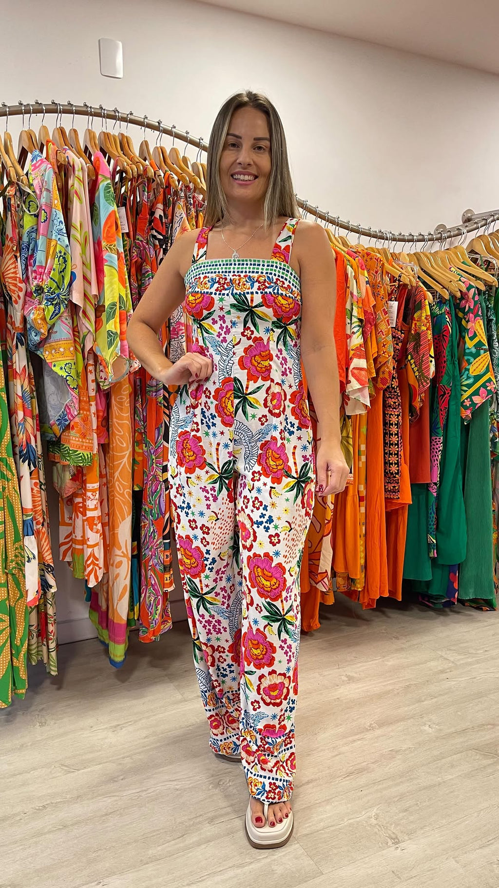 Confeccionado em tecido leve e de alta qualidade, o Macacão Aura proporciona caimento impecável e liberdade de movimento, sendo perfeito para quem busca estar bem-vestida sem abrir mão do conforto.